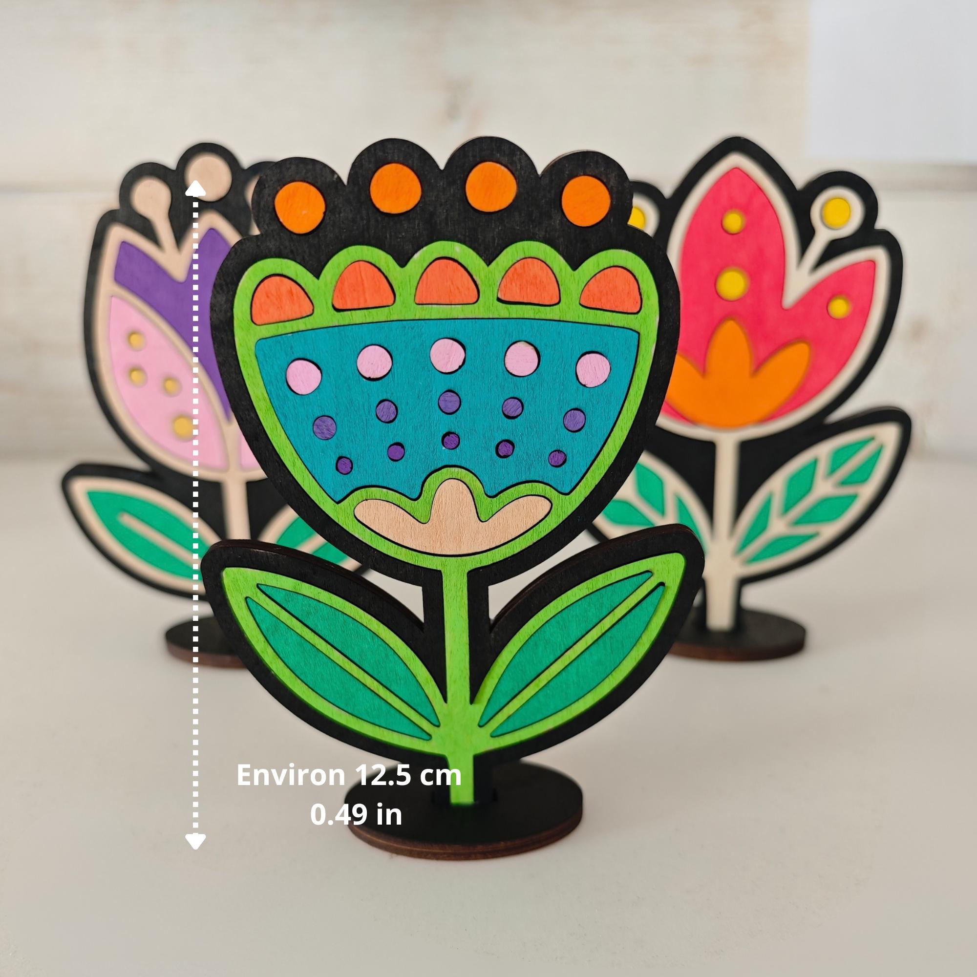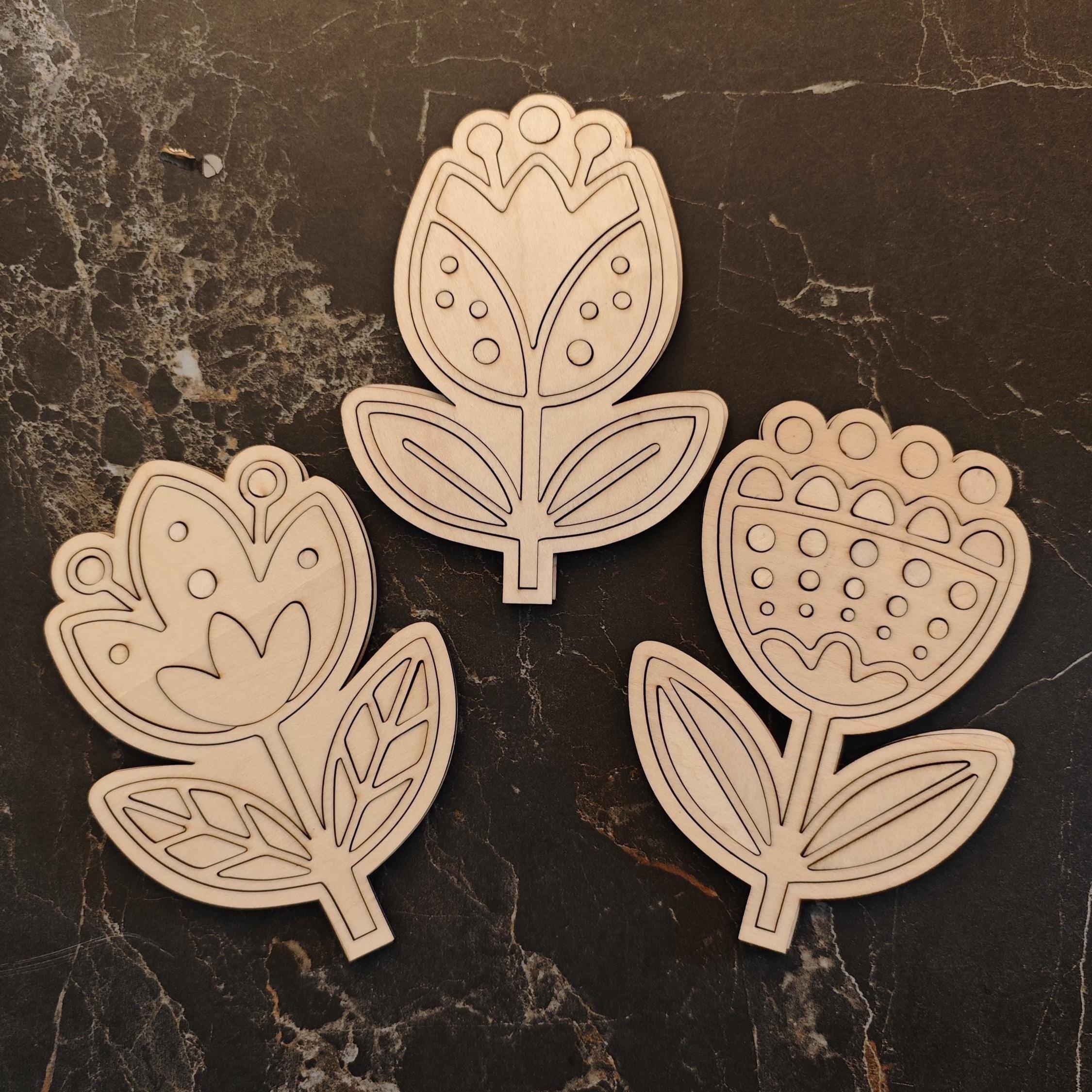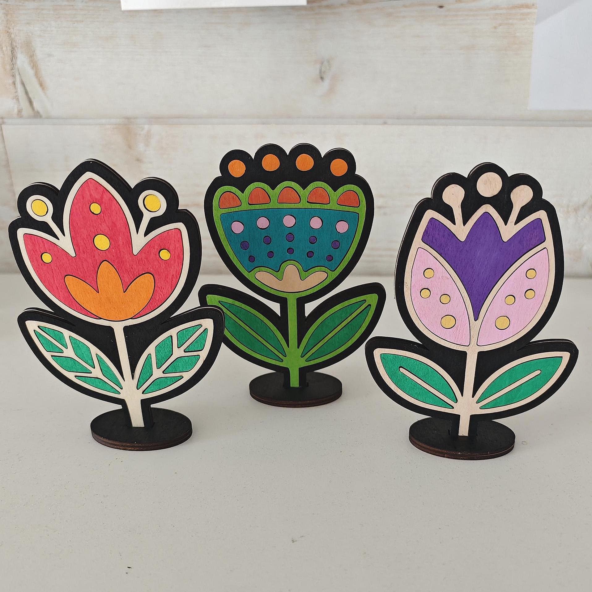 Fichiers fleur découpe laser SVG multicouches. Lot de 3 décorations de fleurs style folk art.