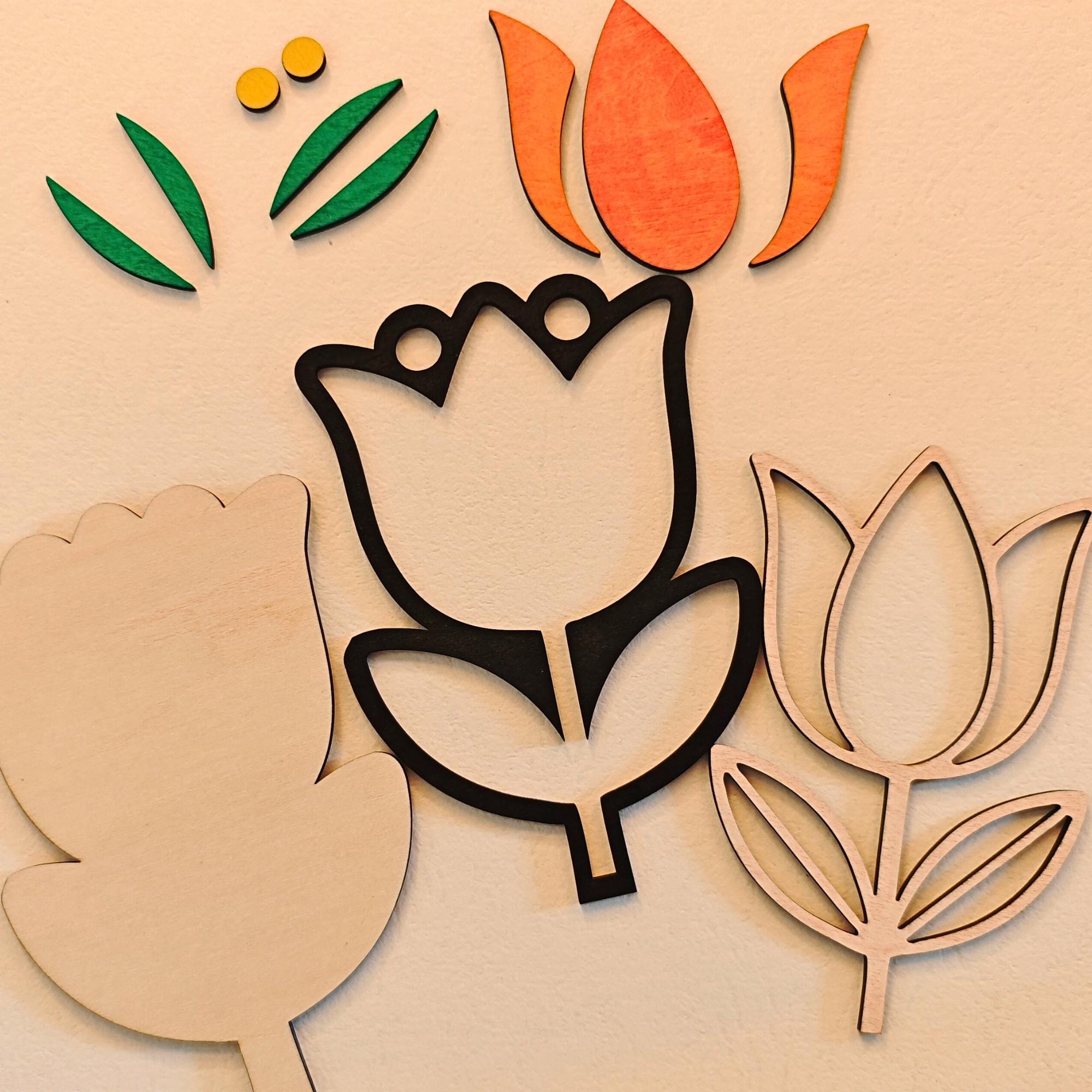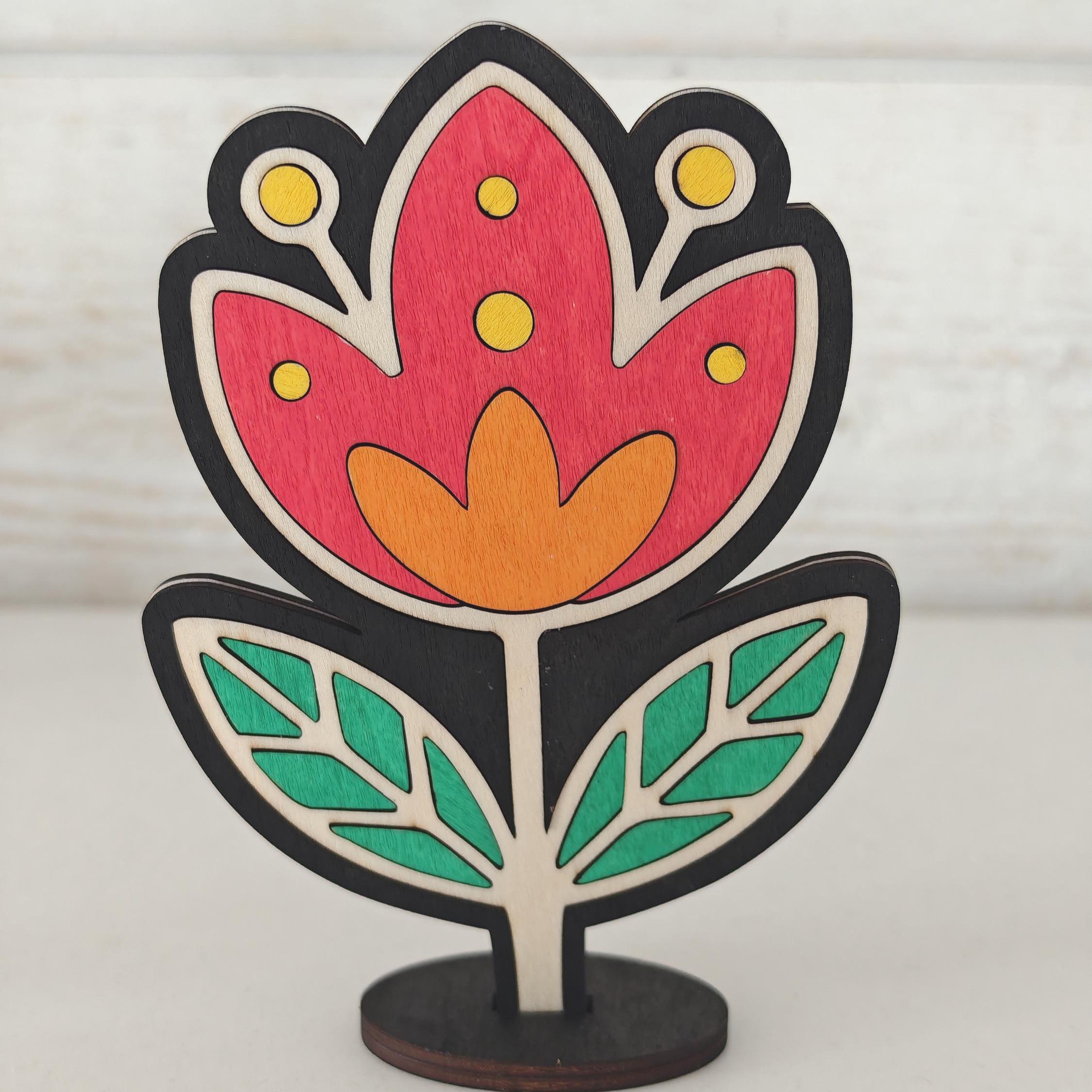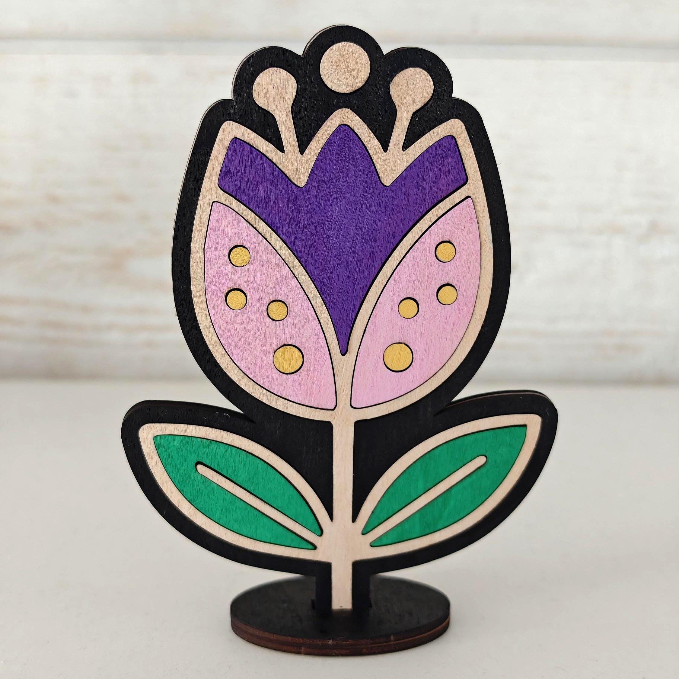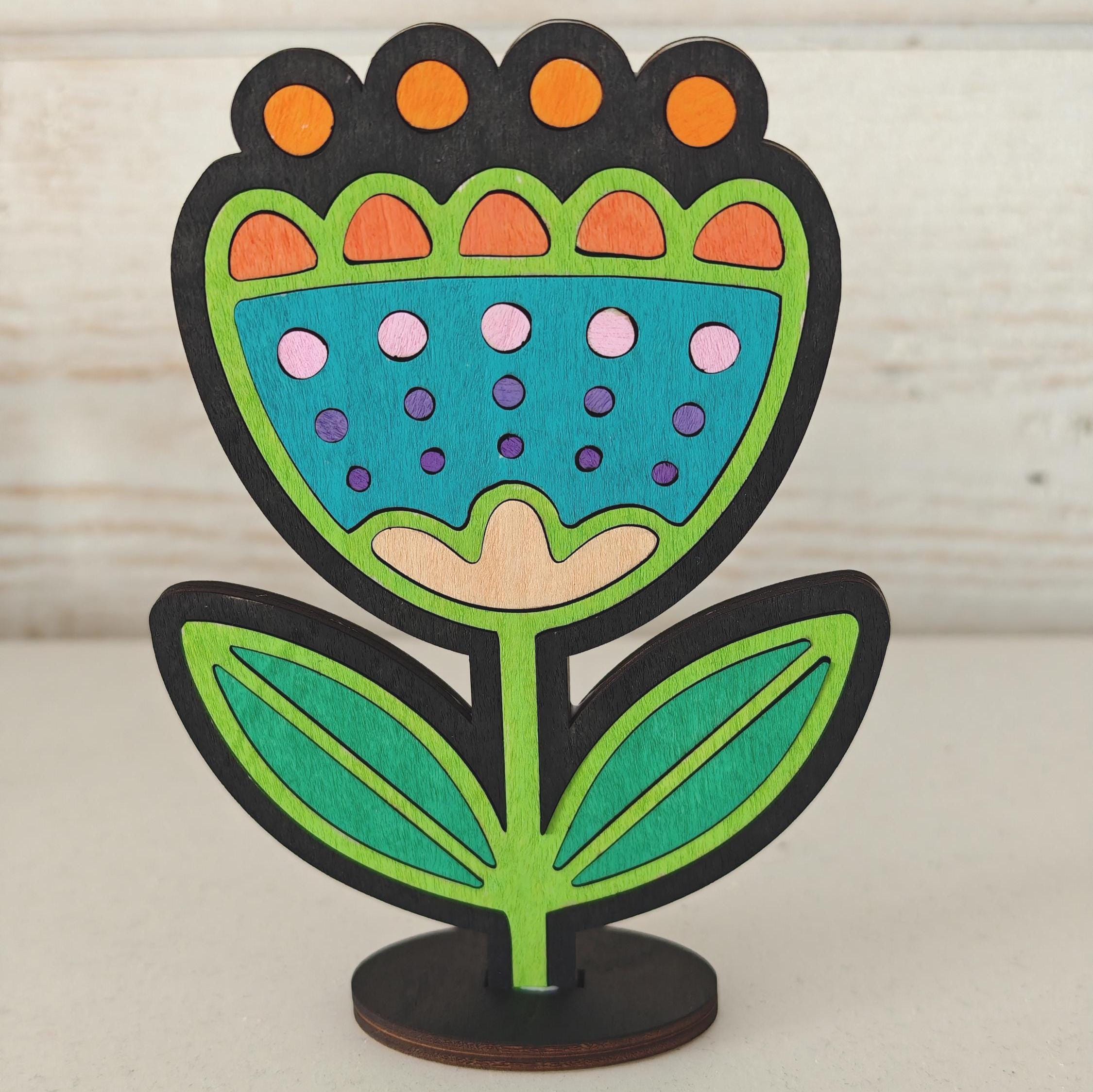 Fichiers fleur découpe laser SVG multicouches. Lot de 3 décorations de fleurs style folk art.
